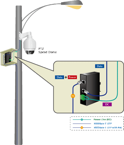 suministro de energía para soluciones no PoE Planet IPOE-162S es un divisor industrial PoE de alta potencia que puede dividir los 48 ~ 56 V CC a través del cable Ethernet existente en la salida de alimentación seleccionable de 12 V o 24 V CC. Admite la capacidad de conexión Ethernet pasiva de 10/100/1000 Mbps y cumple con el estándar IEEE 802.3at High Power over Ethernet que admite una potencia de salida de hasta 25 vatios para el dispositivo con alimentación.